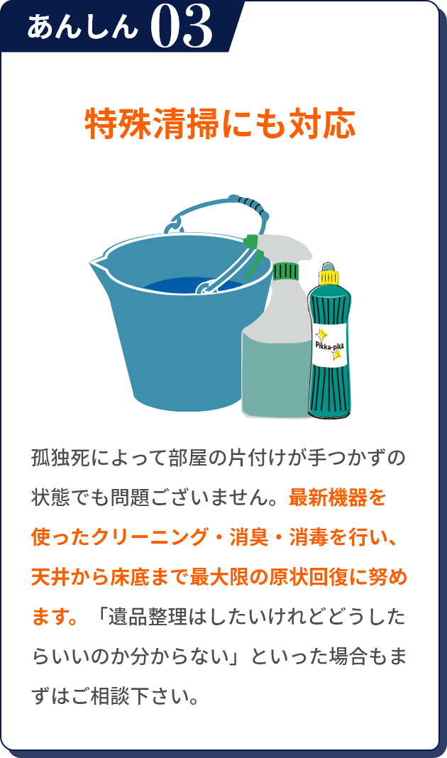 - 孤独死や事故死といった特殊な作業は対応は可能ですか?